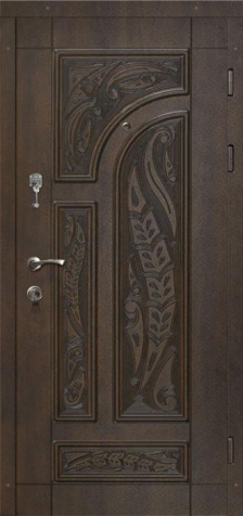 Входная дверь в современном дизайне с вырезным рисунком №24