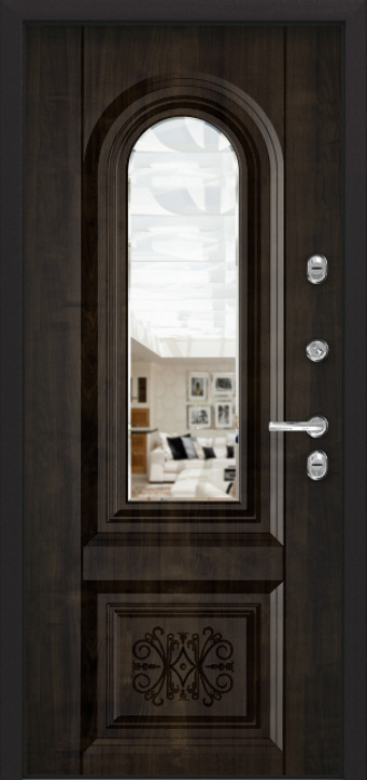 Дверь тёплая входная в частный дом №49 создана для тех, кто ценит надёжность и практичность без лишних компромиссов. Конструкция из профильных труб и стали толщиной 2 мм обеспечивает прочность и устойчивость к взлому, а двойной контур уплотнителя защищает от сквозняков и влаги. Особенность модели — встроенное зеркало, которое не только добавляет удобства, но и визуально расширяет пространство прихожей. Снаружи и внутри дверь отделана МДФ-накладками, материалом, который хорошо переносит повседневные нагрузки, не боится царапин и сохраняет привлекательный вид долгие годы. Замковая система сочетает сувальдный и цилиндровый механизмы от российских производителей, что делает вход максимально безопасным. Модель подходит для установки как в частный дом, так и в квартиру или офис, а возможность комбинировать отделку и дополнять конструкцию стеклопакетами или ковкой открывает простор для индивидуального дизайна. Дверь теплая входная в частный дом №49 от производителя: быстрое изготовление и монтаж в Снегирях, индивидуальные размеры, широкий выбор материалов и фурнитуры, официальная гарантия до 10 лет.