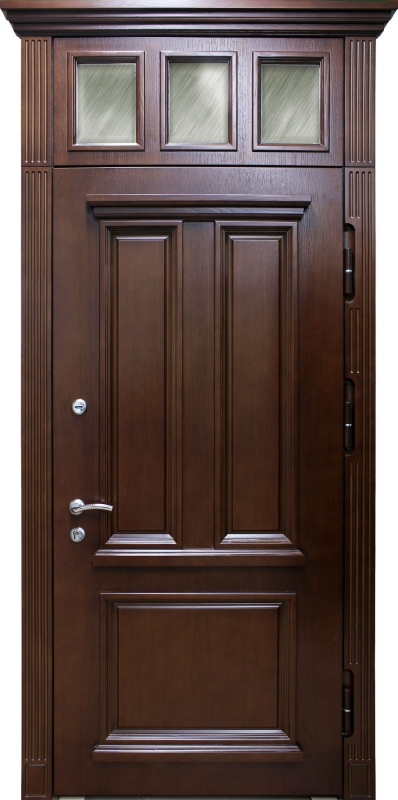 Дверь с сувальдным замком и фрамугой №34 идеально сочетает в себе стиль и надежность. Панель из натурального дерева, использованная как для внешней, так и для внутренней отделки, придает двери благородный и элегантный вид, делая её отличным выбором для помещений с классическим или современным интерьером. Каркас двери выполнен из профильной трубы 50х25 мм и усилен ребрами жесткости, что гарантирует прочность конструкции. Замки от производителей "Просам" и "Мосрентген" с тремя ригелями обеспечивают высокий уровень безопасности. Дверь оснащена уплотнителями с двумя контурами, что гарантирует отличную герметичность, а возможность замены замков и добавления кованых элементов делает её адаптируемой под любые требования. Кроме того, дверь можно дополнить зеркалом, стеклопакетом или видеодомофоном для еще большего комфорта. Входная дверь с сувальдным замком и фрамугой №34 от производителя: быстрое изготовление и монтаж в Снегирях, индивидуальные размеры, широкий выбор материалов и фурнитуры, официальная гарантия до 10 лет.