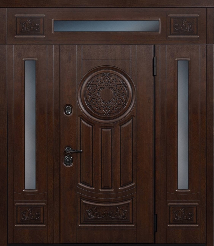 Эта нестандартная парадная дверь с фрамугой №6 — отличный выбор для тех, кто ценит элегантность и долговечность. Внешняя и внутренняя отделка из МДФ придает дверям стильный и современный вид, а также защиту от механических повреждений. МДФ устойчива к царапинам и вмятинам, что делает дверь идеальной для долгосрочной эксплуатации. Каркас из профильной трубы 50х25 мм и лист металла толщиной 2 мм обеспечивают прочность и надежность, а ребра жесткости из профильных труб гарантируют дополнительную устойчивость. В двери установлены блокираторы, два контура уплотнителей из резины, что повышает звуко- и теплоизоляцию. Замки от известных производителей, таких как Просам и Мосрентген, обеспечат надежную защиту. Возможность комбинировать отделку, добавлять зеркало, стеклопакет или кованые элементы позволяет легко адаптировать дверь под любые предпочтения. Нестандартная парадная дверь с фрамугой №6 от производителя: быстрое изготовление и монтаж в Снегирях, индивидуальные размеры, широкий выбор материалов и фурнитуры, официальная гарантия до 10 лет.