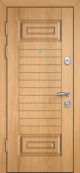 Металлическая конструкция с листом стали толщиной 2 мм и жёстким каркасом из профильной трубы формирует основу, которая не подведёт ни в квартире, ни в офисе. Два контура резинового уплотнителя делают закрывание плотным, уменьшая шум и сквозняки, а наличие блокираторов повышает уровень безопасности. Внешняя и внутренняя отделка выполнена из МДФ ПВХ — материал прочный, устойчивый к мелким повреждениям и сохраняющий аккуратный вид при ежедневной эксплуатации. В центре внимания здесь Железная дверь в квартиру №78, сочетающая надёжность стали и декоративные возможности панелей, которые можно комбинировать по вкусу. Комплект замков представлен сувальдным Просам и цилиндровым Мосрентген, при этом доступна замена на более сложные механизмы вплоть до биометрических систем. Конструкцию легко дополнить зеркалом, стеклопакетом, коваными элементами или видеодомофоном, превратив строгую дверь в удобный и технологичный элемент современного жилья. Железная дверь в квартиру №78 от производителя: быстрое изготовление и монтаж в Снегирях, индивидуальные размеры, широкий выбор материалов и фурнитуры, официальная гарантия до 10 лет.
