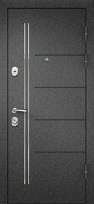 Порошковая входная дверь №65 объединяет прочность металла и практичную отделку, делая её универсальным выбором для квартиры, офиса или подъезда. Каркас и полотно собраны из профильной трубы, усиленной ребрами жесткости, а стальной лист толщиной 2 мм придает конструкции дополнительную устойчивость к нагрузкам. Снаружи нанесено молотковое напыление — покрытие, стойкое к царапинам и атмосферным воздействиям, благодаря чему дверь долго сохраняет аккуратный внешний вид. Внутренняя сторона оформлена ламинированными панелями, создающими ощущение тепла и комфорта. Два резиновых контура уплотнения помогают отсечь сквозняки и пыль, при необходимости можно добавить шумо- и теплоизоляцию. Модель №65 сочетает надежность и лаконичность, а её внешний вид гармонично впишется как в жилое пространство, так и в деловую среду. Порошковая входная дверь №65 от производителя: быстрое изготовление и монтаж в Снегирях, индивидуальные размеры, широкий выбор материалов и фурнитуры, официальная гарантия до 10 лет.