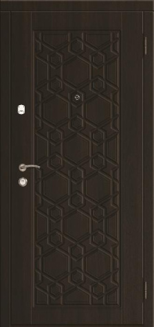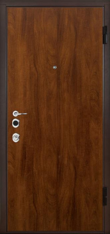 Металлическая дверь с шумоизоляцией — это многослойный «сэндвич»: стальное полотно, внутри — наполнитель из базальтовых/минеральных плит или ППУ, изнутри — декоративная панель (МДФ/шпон/ПВХ). Работает связка: металл отражает и частично рассеивает звук, пористый наполнитель гасит его в толщу, панели добавляют массу и плотность.