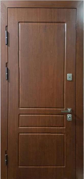 Дверь входная уличная с терморазрывом №41 – это надежная и стильная модель, идеально подходящая для частных домов и коттеджей. Конструкция двери с терморазрывом в коробке и полотне эффективно защищает от холодного воздуха и влаги, обеспечивая стабильный микроклимат внутри помещения. Внешняя и внутренняя отделка из панелей МДФ с ПВХ покрытием не только привлекает внимание своим современным дизайном, но и обеспечивает отличную стойкость к механическим повреждениям, а также долговечность. Металлическое полотно толщиной 1,5 мм с ребрами жесткости из профильных труб гарантирует высокую прочность, а также надежную защиту от взлома. Шумо- и теплоизоляция из пенопласта повышенной плотности создают дополнительный комфорт. Дверь оснащена высококачественными замками Kale Kilit с тремя ригелями, что обеспечивает высокий уровень безопасности. Дверь входная уличная с терморазрывом №41 от производителя: быстрое изготовление и монтаж в Снегирях, индивидуальные размеры, широкий выбор материалов и фурнитуры, официальная гарантия до 10 лет.