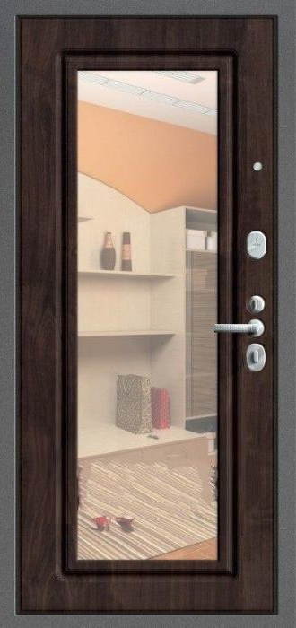 Каркас из профильной трубы и стальной лист толщиной 2 мм обеспечивают прочность конструкции и устойчивость к взлому, а два контура уплотнителей защищают помещение от сквозняков и уличного шума. Входная дверь в квартиру с зеркалом №10 выделяется сочетанием практичного молоткового напыления снаружи и аккуратной плиты МДФ внутри. Такое покрытие не боится механических повреждений и перепадов температуры, долго сохраняя первоначальный вид. Зеркало на внутренней стороне делает прихожую светлее и визуально просторнее, заменяя полноценное настенное. Дополнительные блокираторы и система ребер жёсткости усиливают надежность. Возможность изготовления в любых размерах позволяет адаптировать модель под особенности квартиры, офиса или частного дома, сохранив баланс между эстетикой и безопасностью. Входная дверь в квартиру с зеркалом №10 от производителя: быстрое изготовление и монтаж в Снегирях, индивидуальные размеры, широкий выбор материалов и фурнитуры, официальная гарантия до 10 лет.