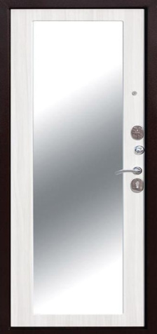 Стальная дверь с зеркалом №54 создана для тех, кто ценит надёжность конструкции и практичность в быту. Зеркальная вставка внутри делает её особенно удобной для квартир и офисов, позволяя экономить пространство и добавлять свет в интерьер. Каркас собран из профильной трубы, усилен рёбрами жёсткости и обшит листом стали толщиной 2 мм, что гарантирует прочность и устойчивость к механическим нагрузкам. Панели МДФ с ПВХ-покрытием в отделке защищают поверхность от царапин и не теряют привлекательности даже при интенсивной эксплуатации. Два контура уплотнения снижают проникновение сквозняков и уличного шума, а система замков Просам и Мосрентген обеспечивает высокий уровень безопасности. Возможность выбрать размер, направление открывания и варианты отделки делает модель универсальной для частных домов и городских квартир. Стальная дверь с зеркалом№54 от производителя: быстрое изготовление и монтаж в Снегирях, индивидуальные размеры, широкий выбор материалов и фурнитуры, официальная гарантия до 10 лет.