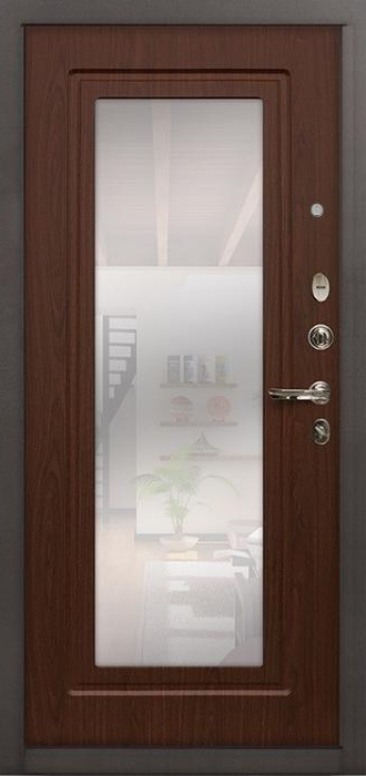 Входная дверь с зеркальными вставками №56 сочетает надежность металлической конструкции и удобство функционального декора. Зеркало не только украшает интерьер, но и делает помещение визуально просторнее, что особенно ценно для квартир и офисов. Для частного дома такая дверь добавляет практичности — всегда можно взглянуть на отражение, выходя на улицу. Отделка выполнена из панелей МДФ с ПВХ-покрытием, устойчивым к царапинам и мелким повреждениям, что обеспечивает долговечность и сохранение первоначального вида. Каркас собран из профильной трубы, усилен рёбрами жёсткости и металлическим листом толщиной 2 мм, благодаря чему дверь выдерживает серьёзные нагрузки и обеспечивает защиту от взлома. Два контура уплотнения препятствуют проникновению сквозняков и пыли, а резиновый уплотнитель сохраняет плотное прилегание полотна. Замковая система включает надежные российские механизмы Просам и Мосрентген, которые отличаются стабильной работой и высоким ресурсом. Дверь №56 — это прочность, удобство и современный дизайн в одной конструкции. Входная дверь с зеркальными вставками №56 от производителя: быстрое изготовление и монтаж в Снегирях, индивидуальные размеры, широкий выбор материалов и фурнитуры, официальная гарантия до 10 лет.