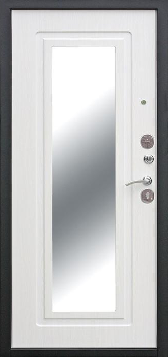 Железная дверь входная в квартиру с зеркалом №68 сочетает в себе надежность металла и практичность продуманного дизайна. Снаружи она покрыта молотковым напылением, известным своей устойчивостью к сколам и царапинам, а также способностью долго сохранять аккуратный внешний вид даже при активной эксплуатации. Внутренняя сторона оформлена накладкой из МДФ, что делает её гармоничным элементом интерьера и добавляет уюта. Встроенное зеркало не только удобно в повседневной жизни, но и визуально расширяет пространство прихожей. Основа конструкции выполнена из профильных труб с листом стали толщиной 2 мм, что гарантирует прочность и долговечность. Два контура уплотнения защищают от сквозняков и уличного шума, а наличие терморазрыва в коробке и полотне препятствует промерзанию в холодное время года. Такая дверь станет надежным и функциональным решением для квартиры, офиса или загородного дома. Железная дверь входная в квартиру с зеркалом №68 от производителя: быстрое изготовление и монтаж в Снегирях, индивидуальные размеры, широкий выбор материалов и фурнитуры, официальная гарантия до 10 лет.
