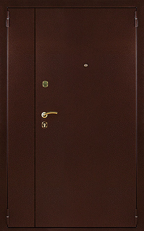 Двухстворчатая металлическая тамбурная дверь эконом №1 сочетает в себе простоту и надежность, что делает её отличным выбором для установки в местах с высокой проходимостью. Внешняя порошковая окраска обеспечивает стойкость к механическим повреждениям, а внутренняя отделка из ламинированных панелей придает двери элегантный вид, сохраняя при этом долговечность и устойчивость к внешним воздействиям. Каркас и полотно выполнены из профильной трубы 50х25 мм, что гарантирует прочность конструкции. Толщина металла 2 мм и наличие ребер жесткости добавляют дополнительную жесткость и защиту. Дверь оснащена замками "Просам" и "Мосрентген", каждый из которых имеет по три ригеля для надежного запирания. Резиновое уплотнение с двумя контурами надежно защищает от попадания влаги и пыли. Возможность комбинировать отделки и добавить зеркало, стеклопакет или кованые элементы позволяет сделать дверь не только функциональной, но и стильной. Тамбурная металлическая двухстворчатая дверь эконом №1 от производителя: быстрое изготовление и монтаж в Снегирях, индивидуальные размеры, широкий выбор материалов и фурнитуры, официальная гарантия до 10 лет.
