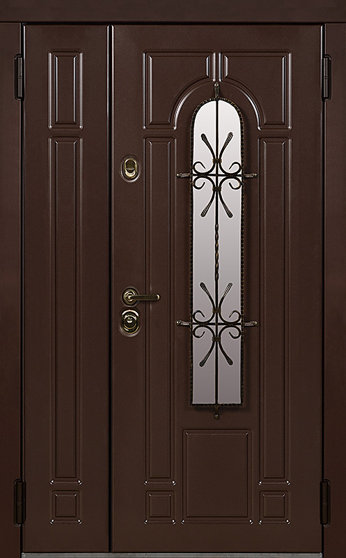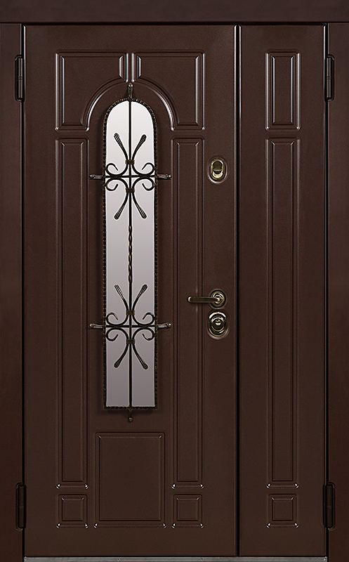 Эта металлическая двухстворчатая дверь с арочным стеклопакетом №15 представляет собой идеальный баланс между эстетикой и прочностью. Арочное стекло добавляет в её дизайн утончённость, а ковка в декоре придаёт изысканный, но в то же время крепкий и надёжный вид. Плита МДФ, используемая как для внешней, так и для внутренней отделки, не только сохраняет прекрасный внешний вид, но и устойчива к механическим повреждениям. Металлическая двухстворчатая дверь с арочным стеклопакетом №15 от производителя: быстрое изготовление и монтаж в Снегирях, индивидуальные размеры, широкий выбор материалов и фурнитуры, официальная гарантия до 10 лет.