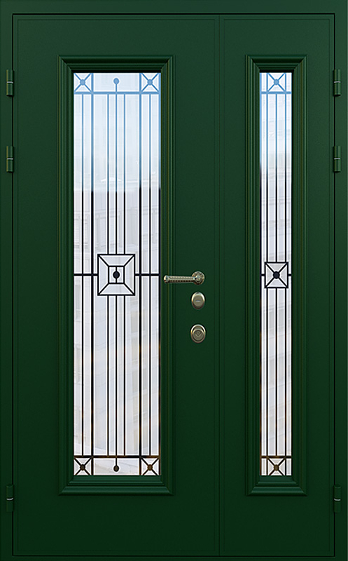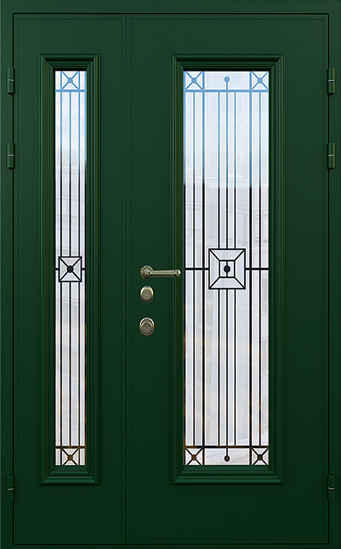 Зеленая полуторная дверь со стеклопакетом для частного дома №18 — это идеальный выбор для тех, кто хочет добавить в свой дом надежность и стиль. Элементы декора, такие как багет и ковка, придают двери элегантный вид, который идеально гармонирует с фасадом загородного дома. Панели МДФ с ПВХ-покрытием, использованные для внешней и внутренней отделки, обеспечивают высокую стойкость к механическим повреждениям и внешним воздействиям, сохраняя прекрасный внешний вид на долгое время. Зеленая полуторная дверь со стеклопакетом для частного дома №18 от производителя: быстрое изготовление и монтаж в Снегирях, индивидуальные размеры, широкий выбор материалов и фурнитуры, официальная гарантия до 10 лет.