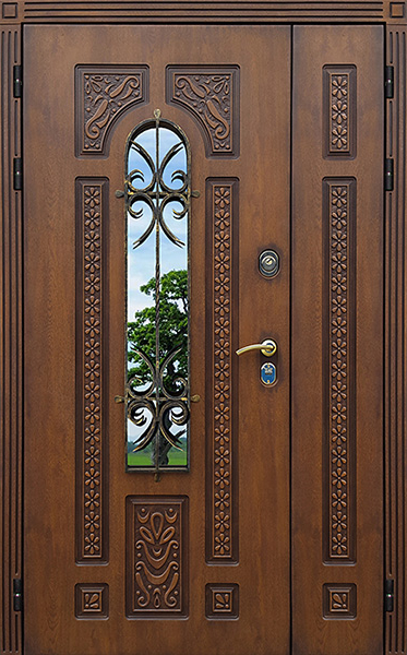Двойная входная дверь с большим стеклом и ковкой для дома №25 сочетает в себе стиль и надежность, предлагая великолепное решение для вашего дома. Внешняя и внутренняя отделка выполнены из панелей МДФ с ПВХ, что придает двери долговечность и устойчивость к механическим повреждениям, а также способствует легкости ухода. Стеклопакет в комбинации с изысканным кованым узором создаёт не только эстетическое наслаждение, но и позволяет улучшить светопроникновение в помещении. Двойная входная дверь с большим стеклом и ковкой для дома №25 от производителя: быстрое изготовление и монтаж в Снегирях, индивидуальные размеры, широкий выбор материалов и фурнитуры, официальная гарантия до 10 лет.