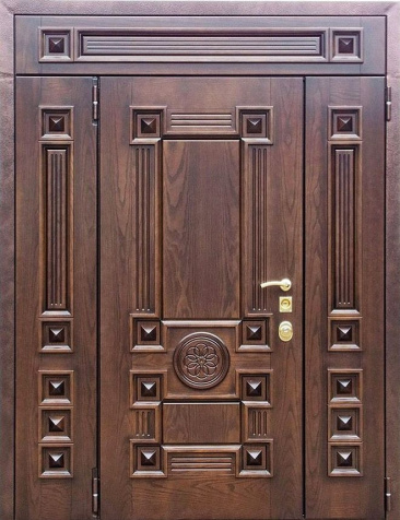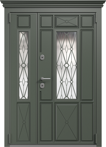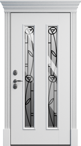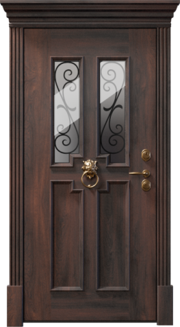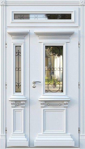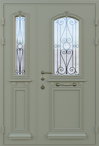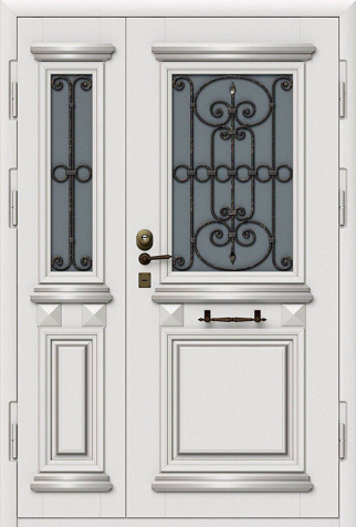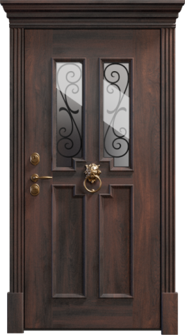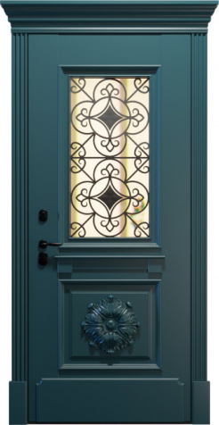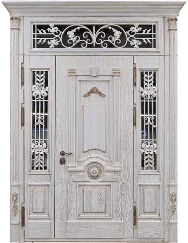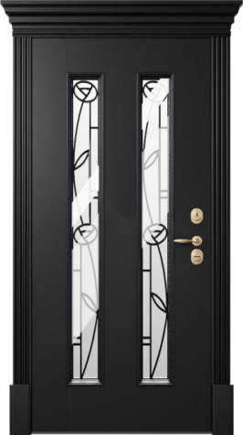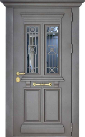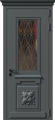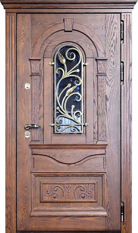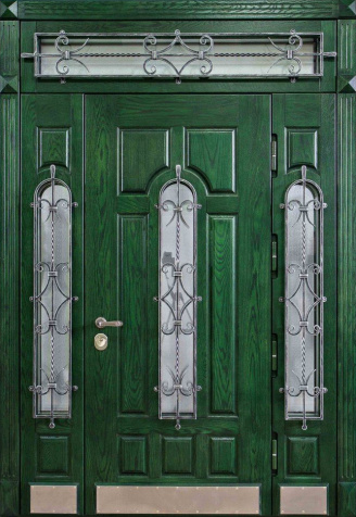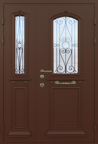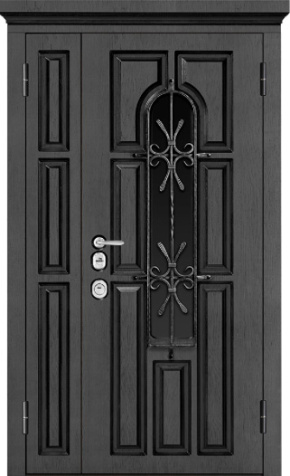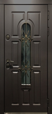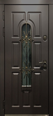 Дверь входная металлическая с стеклом и ковкой для дома №34