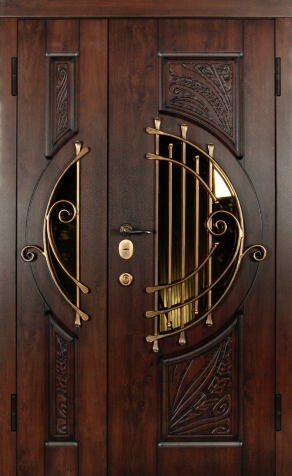 Эта модель выделяется своим масштабом и декоративностью: двухстворчатая дверь со вставками и ковкой №2 подчеркивает парадность входа и придает фасаду респектабельность. Основу составляет прочный каркас из стальных профильных труб с листом металла толщиной 2 мм и ребрами жесткости, что обеспечивает долговечность и защиту. Снаружи и внутри полотно облицовано накладками МДФ, которые позволяют воплотить различные варианты текстур и оттенков, сохраняя устойчивость к механическим повреждениям и влиянию внешней среды. Кованые элементы вносят в образ двери нотку изысканности и индивидуальности, делая ее центральным акцентом всего фасада. Для безопасности предусмотрены два замка турецкого производителя Kale Kilit — цилиндровый и сувальдный, каждый с ригелями, усиливающими защиту. Такая дверь сочетает надежность металлической конструкции с эстетикой классического дизайна, превращая вход в настоящий архитектурный акцент. Двухстворчатая дверь со вставками и ковкой №2 от производителя: быстрое изготовление и монтаж в Снегирях, индивидуальные размеры, широкий выбор материалов и фурнитуры, официальная гарантия до 10 лет.
