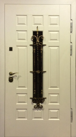 Большая выходная дверь со стеклом и ковкой №4 создана для тех, кто ценит выразительный фасад и надежную защиту одновременно. Эффектная вставка из закаленного стекла, дополненная изящной ковкой, превращает вход в дом или особняк в настоящую архитектурную деталь. Металлическое полотно усилено листом толщиной 2 мм и системой жестких ребер, что придает конструкции устойчивость к нагрузкам и взлому. Короб и полотно собраны из профильной трубы, а два контура резинового уплотнителя обеспечивают плотное прилегание и защиту от сквозняков. Для отделки использованы панели МДФ ПВХ — материал, который устойчив к влаге, царапинам и перепадам температуры, сохраняя внешний вид в течение многих лет. Такая дверь уместна в качестве парадного входа, где важна не только надежность, но и презентабельный внешний облик. Большая выходная дверь со стеклом и ковкой №4 от производителя: быстрое изготовление и монтаж в Снегирях, индивидуальные размеры, широкий выбор материалов и фурнитуры, официальная гарантия до 10 лет.