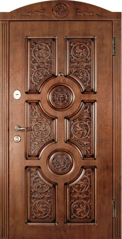 Арочный проём всегда смотрится благородно и подчёркивает архитектурный стиль дома, а витраж вносит в фасад лёгкость и игру света. Арочная входная дверь с витражом в частный дом №69 сочетает прочную металлическую основу с отделкой панелями из натурального дерева, которые сохраняют свою красоту долгие годы и стойко переносят ежедневную эксплуатацию. В конструкции предусмотрен лист стали толщиной 2 мм и система ребер жёсткости, что обеспечивает высокий уровень безопасности и долговечности. Терморазрыв в коробке и полотне защищает от промерзания и появления конденсата, сохраняя тепло в доме даже в сильные морозы. Итальянские замки Cisa цилиндрового и сувальдного типа дополняют защиту, гарантируя надёжность при ежедневном использовании. Возможность индивидуальной отделки, добавления зеркала, кованых элементов или стеклопакета делает эту модель не только функциональной, но и выразительной деталью экстерьера. Арочная входная дверь с витражом в частный дом №69 от производителя: быстрое изготовление и монтаж в Снегирях, индивидуальные размеры, широкий выбор материалов и фурнитуры, официальная гарантия до 10 лет.