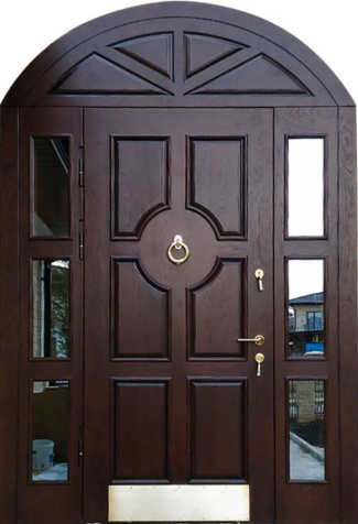 Дверь входная металлическая с стеклом и ковкой для дома №34